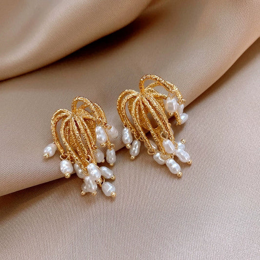 14K Gold-Plated Pearl Firework Tassel Earrings