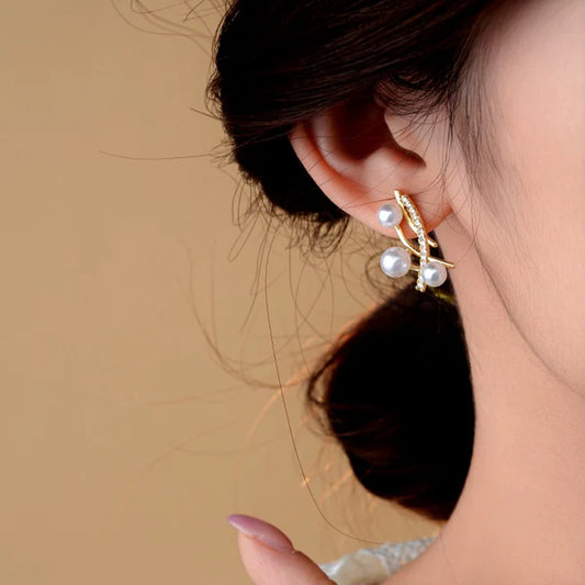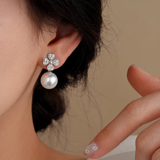 14K Gold-Plated Zircon Diamond Pearl Earrings