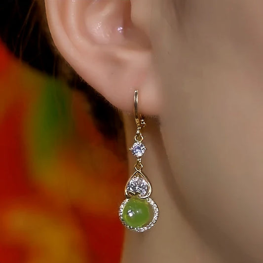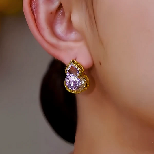 14K Gold-Plated Zircon Gourd Good Luck Earrings