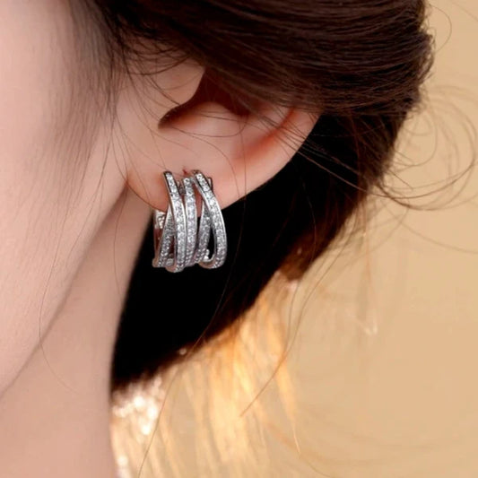 14K Gold-Plated Zircon Multi-Layer Hoop Earrings