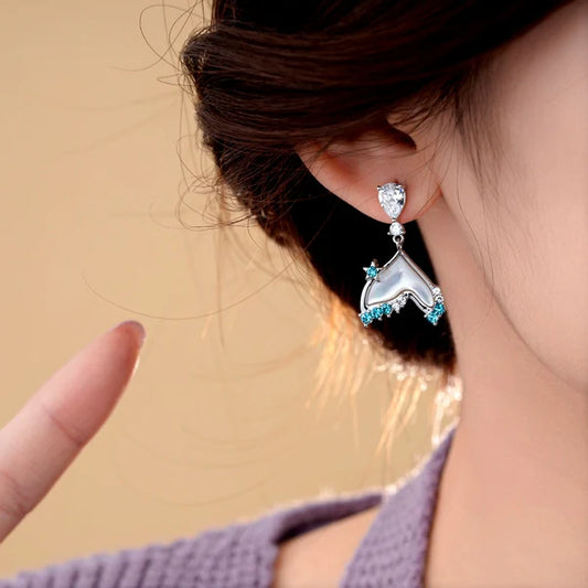14K Gold-Plated Zircon Fishtail Tassel Earrings