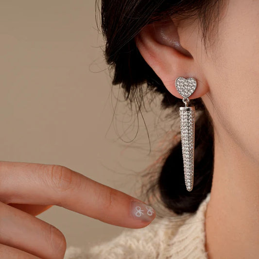 14K Gold-Plated Zircon Heart Tassel Earrings
