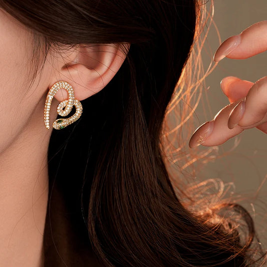 14K Gold-Plated Zircon Snake Heart Stud Earrings
